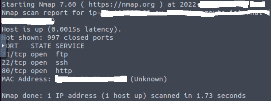 We can see in the output that 3 ports, namely 21, 22 and 80 are open and running different services. These ports fall under the reserved ports or “privileged ports” which are all the ports between port 1 to port 1023. These ports are “well-known” port number in order to make it easy for potential clients to find it and the required services.